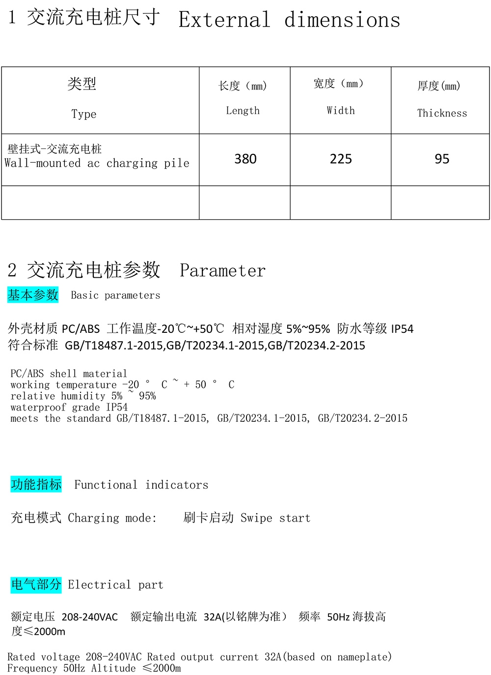 国标慢充交流充电桩